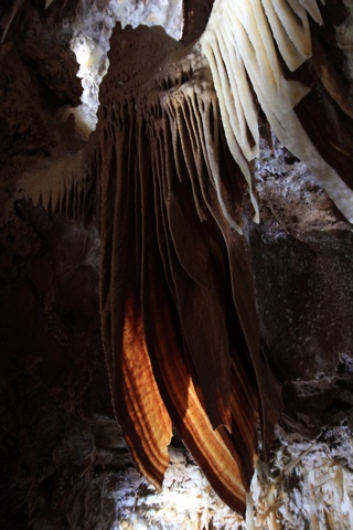 Ovat ne... viimeisessä kuvassa näkyvät verhot ovat jotain seitsemän metriä korkeat ja parin sentin paksuiset alaosistaan. Oriental caveen kun ukot kaivoivat oikotunnelin, niin eivät muistaneet viimeisen viiden metrin matkalla kaivaa käsipelillä, vaan dynyllä vaan loppuun saakka. Ekaan kammioon päästyään duunarit pistivät lekalla alas useimmat tiellä olleet heltat... onneksi niitä jäi vielä muihin kammioihin jäljelle.